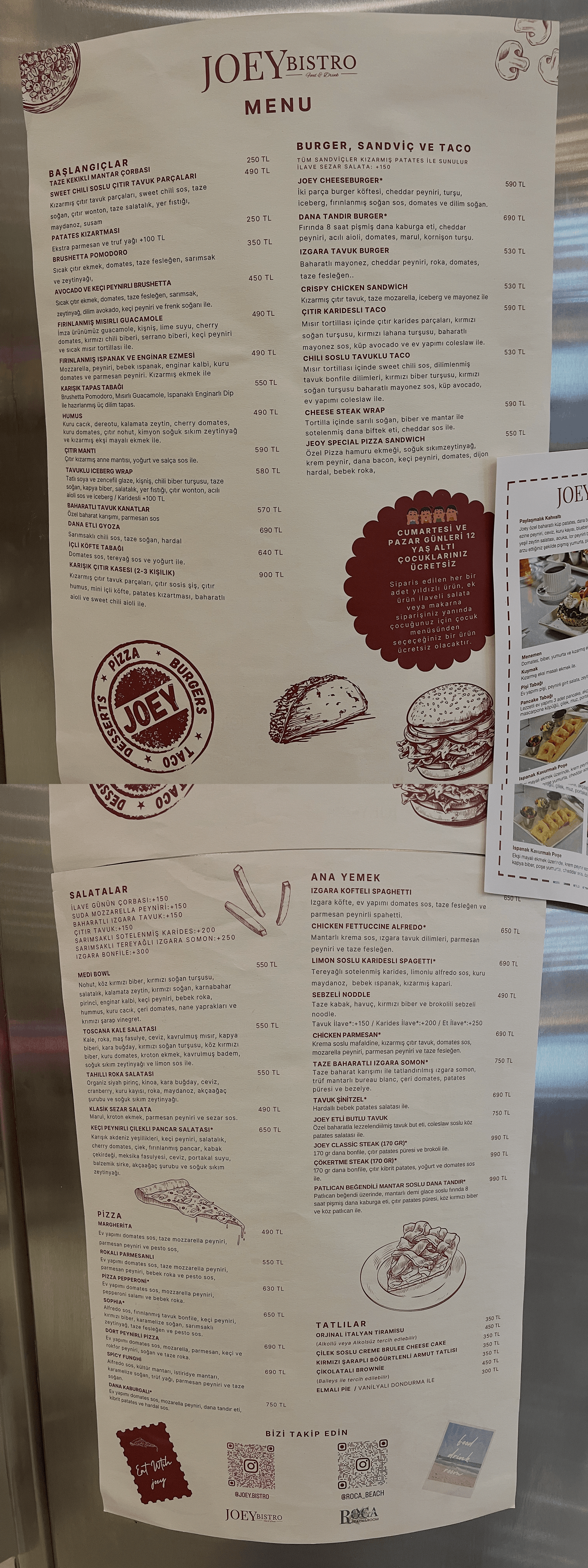 🍽️ Bilkent Ankuva AVM’de, Blue Jay’in yerine Joey Bistro açıldı. Menü; burger, pizza, salata ve ana yemeklerden oluşan geniş ama tanıdık bir çizgide ilerliyor. Ankuva tarafında yeni bir buluşma ve öğle alternatifi olarak not düşebilirsiniz. Instagram | Menü